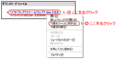 - 以下のソフトウェア(ファームウェア)を右クリックして、「保存」を選択し、ご利用のPCにダウンロードします。