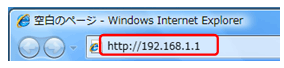 - PCと本商品のLANポートがLANケーブルで接続されていることを確認し、WebブラウザのURL欄に「http://192.168.1.1/」を入力します。※