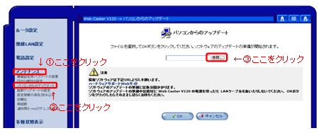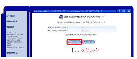- WebCaster V120ソフトウェアアップグレード画面が表示されます。