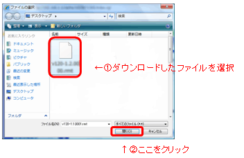 ダウンロードしたファイルを選択し、[開く]をクリックします。