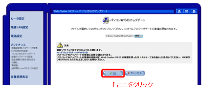 - ファームウェアのアップデート中は絶対に本商品とパソコンを接続しているLANケーブルを抜かないでください。本商品が起動できなくなり、使用できなくなる場合があります。
