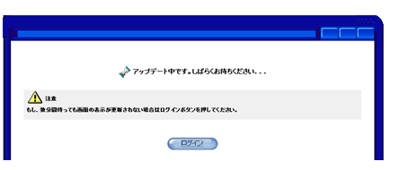 - ファームウェア更新が完了すると、[ログイン]画面に戻ります。なお、更新が完了するまでに数分かかります。