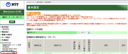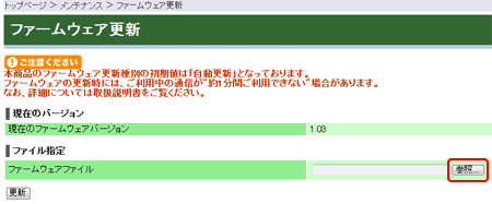 - 本商品の「ファームウェア更新」の初期値は、「自動更新」と設定されておりますのでお客さまによる設定は不要です。