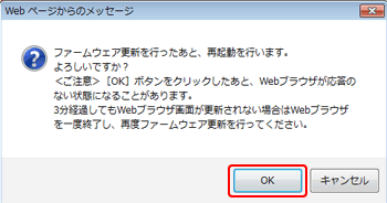 - ファームウェアのアップデート中は絶対に本商品とパソコンを接続しているLANケーブルを抜かないでください。本商品が起動できなくなり、使用できなくなる場合があります。