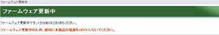 - ファームアップ中は以下の画面が表示されます。ファームウェア更新が完了するまで、電源を抜かずにお待ちください。