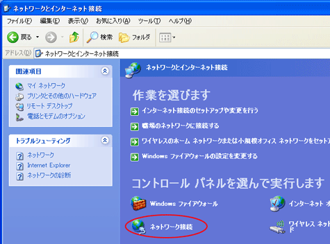 [ネットワークとインターネット接続]アイコンをクリックする |