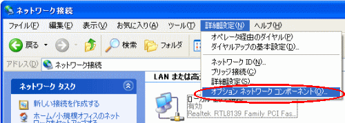 メニューの[詳細設定]をクリックし、 [オプションネットワークコンポーネント]を選択する |