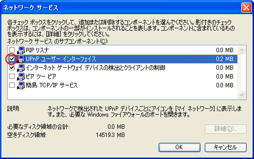 [UPnP ユーザーインターフェイス]にチェックを入れる |