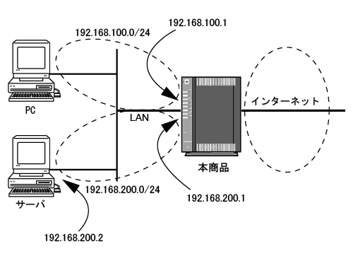 (例) 仮想DMZ側のIPアドレスが「192.168.200.1」、サブネットマスクが「255.255.255.0」の場合