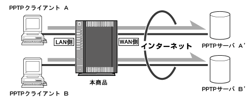 ・LAN側のPPTPクライアントからWAN側のPPTPサーバへのアクセス