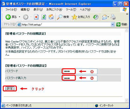 - WWWブラウザを起動し、アドレス入力欄に“http://ntt.setup/”を入力して設定画面を開きます。