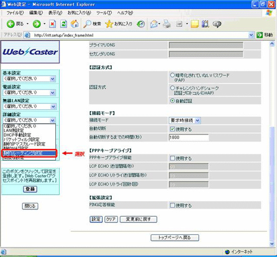 「登録」をクリックして下さい。(WebCaster3100NVが再起動します)