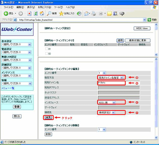 ここでは、接続設定1にプロバイダ接続、接続設定2にフレッツ・スクウェア接続の設定をする方法をご紹介します。