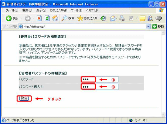 本商品のIPアドレス(初期値は192.168.1.1)を入力して設定画面を開くこともできます。 - 「管理者パスワードの初期設定」を行います。