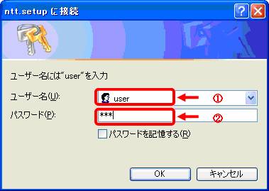 - ユーザー名とパスワードを入力し、「OK」をクリックして下さい。