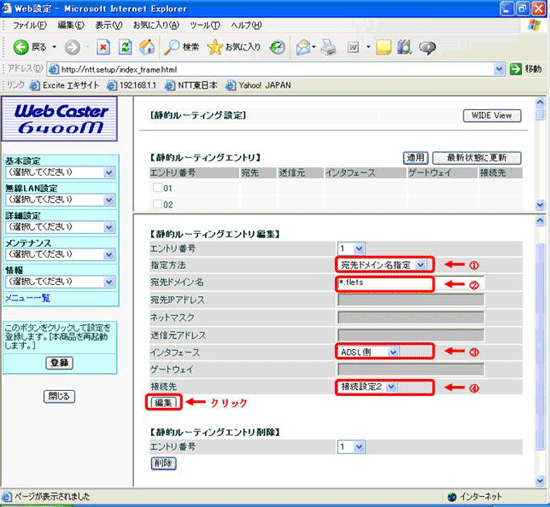 後からフレッツ・スクウェアの設定を追加する場合は以下の設定を行なってください。