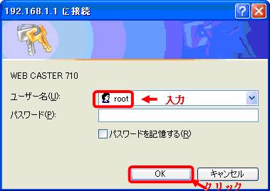 - パスワード入力ダイアログが立ち上がってきます。初期状態では以下のような設定になっています。