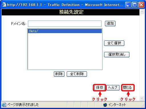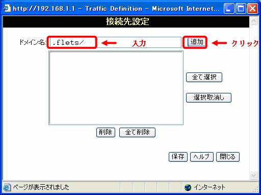 - ドメイン名に「.flets/」と入力し「追加」ボタンをクリックします。