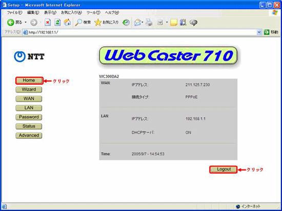 - 左側のメニューより「Home」ボタンをクリックし、「Logout」ボタンが表示されたらクリックしログアウトします。