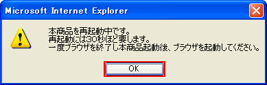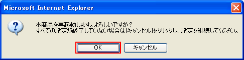 - 次に、以下のダイヤログが表示されます。「OK」をクリックします。モデムが再起動されます。