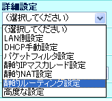 - メニューの「詳細設定」から「静的ルーティング設定」を選択します。