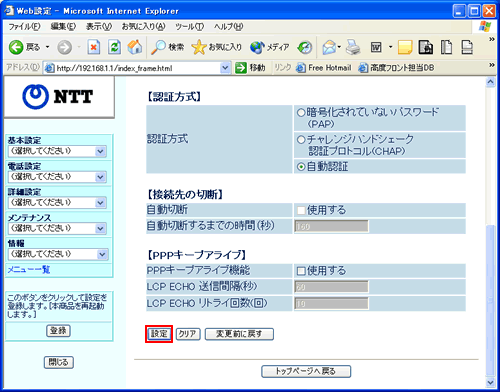 一度設定すると、モデムを初期化するまでこの画面は表示されません。