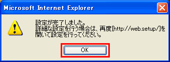 - 設定が完了すると、以下のダイヤログが表示されます。