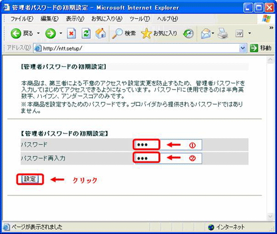 - WWWブラウザを起動し、アドレス入力欄に“http://ntt.setup/”を入力して設定画面を開きます。