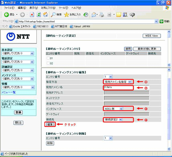 ここでは、接続設定1にプロバイダ接続、接続設定2にフレッツ・スクウェア接続の設定をする方法をご紹介します。