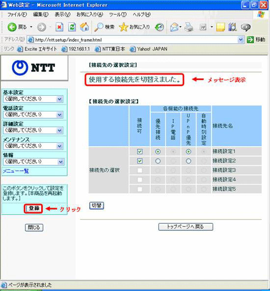 - 「使用する接続先を切替えました。」とメッセージが表示されます。