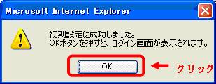 表示されない場合は、手順4に進んでください。 - 初期設定が完了すると以下の表示が出ますので、「OK」ボタンを押して下さい。