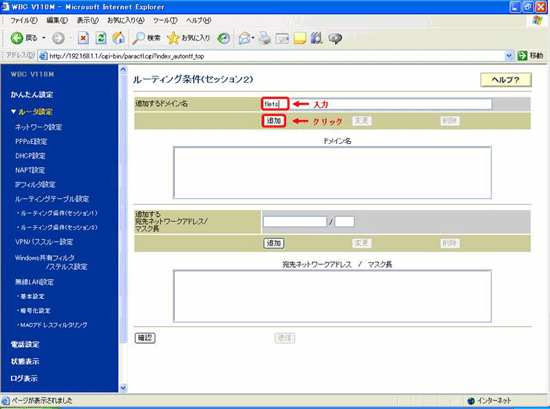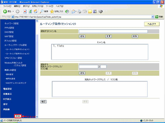 - 追加するドメイン名で「flets」を入力し「追加」ボタンをクリックします。