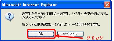 - 以下のような確認メッセージが出ますので「OK」ボタンを押し本装置を再起動させます。