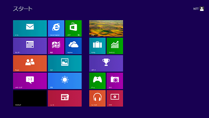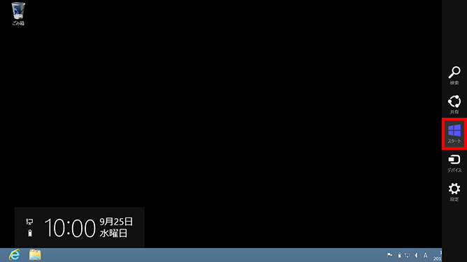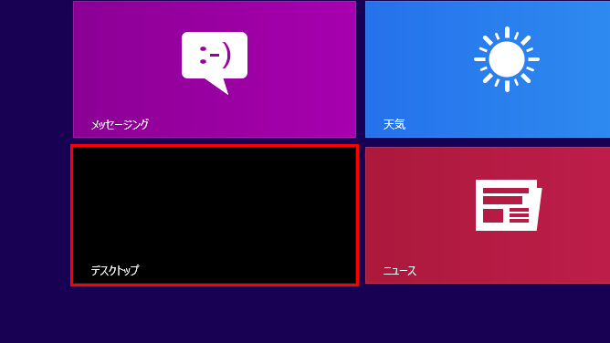 スタート画面の【デスクトップ】タイルをタップまたはクリックしてください。