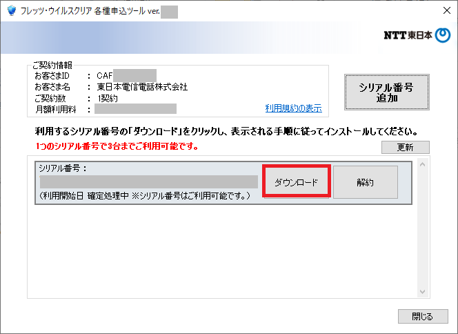 - 「フレッツ・ウイルスクリア 各種申込ツール」を、下記のボタンからダウンロードしてください。
