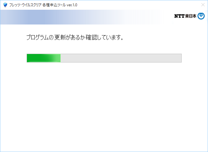 - 「フレッツ・ウイルスクリア 各種申込ツール」が自動的に起動し、アップデートを確認します。
