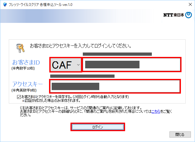 ご利用のパソコンに「フレッツ・ウイルスクリア 各種申込ツール」をインストールします。