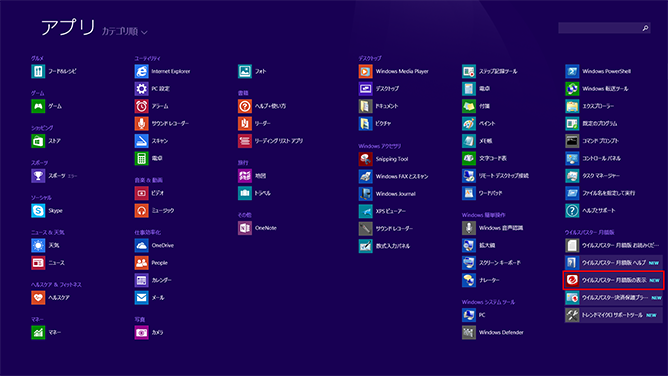 アプリ一覧に【ウイルスバスター 月額版の表示】の項目がある方