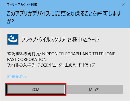 - 「ユーザーアカウント制御」が表示された場合は、【はい】をタップまたはクリックしてください。