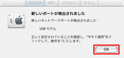「新しいポートが検出されました」と表示される場合がありますので、【OK】を選択してください。