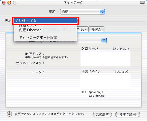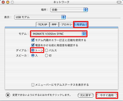 モデム 同期64kbpsに対応したものを選択してください。 ダイアル 【トーン】を選択してください。 設定が済みましたら、【今すぐ適用】をクリックしてください。