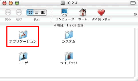 デスクトップ上のハードディスクのアイコンをダブルクリックし、開いたウィンドウ内の【アプリケーション】フォルダをダブルクリックしてください。