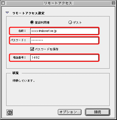 - 【パスワード】はインターネットサービスプロバイダに登録されているパスワードを入力してください。