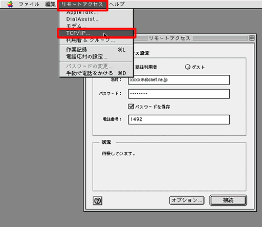 TA+Macintoshの設定:TCP/IP + リモートアクセス