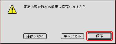 「変更内容を現在の設定に保存しますか?」と聞いてきますので、【保存】をクリックしてください。