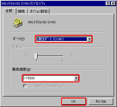 【ポート】はパソコンとターミナルアダプタ(TA)が接続されているポートを選択してください。