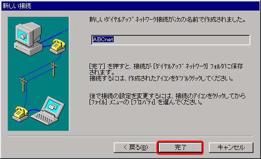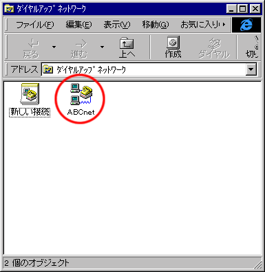 【ダイヤルアップネットワーク】に作成した接続のアイコンが表示されます。