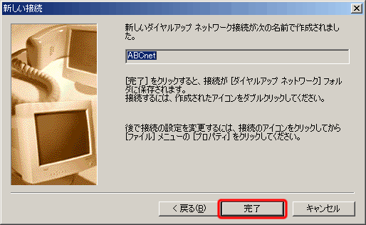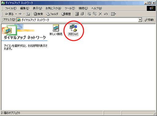 【ダイヤルアップネットワーク】に作成した接続のアイコンが表示されます。