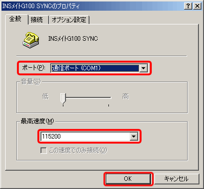 【ポート】はパソコンとターミナルアダプタ(TA)が接続されているポートを選択してください。