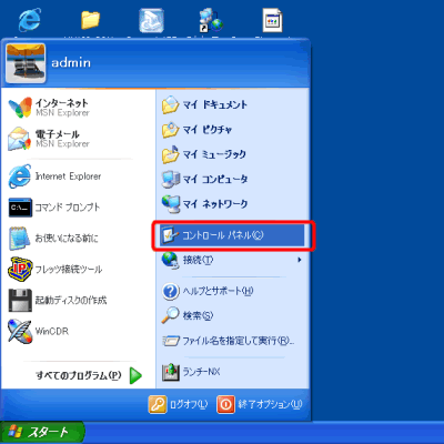 【スタート】をクリックして【コントロールパネル】をクリックしてください。